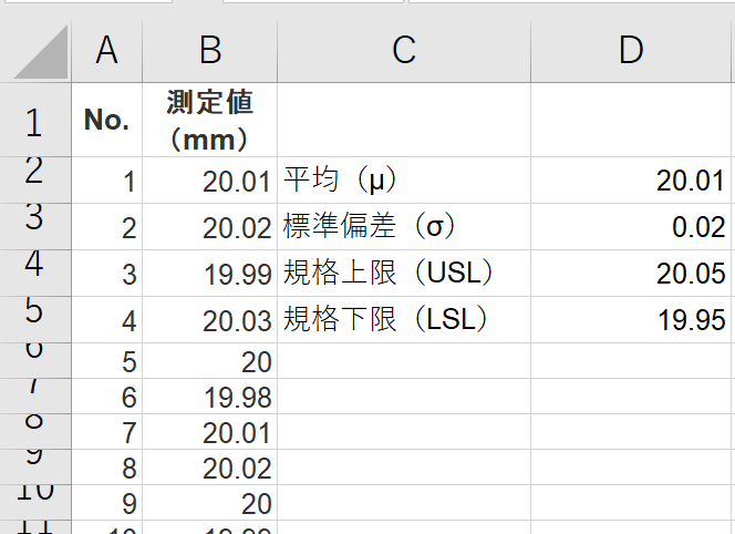 | 規格上限(USL) | 20.05 | 直接入力 |